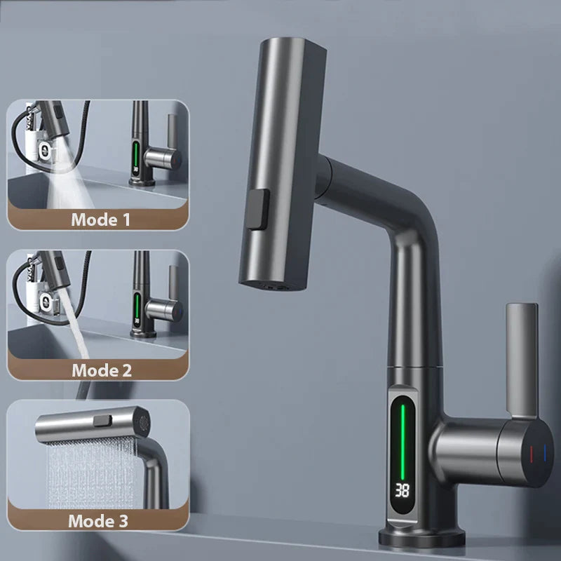 Crafted for Convenience: Our Amazing Digital Display Basin Faucet offers both hot and cold water options, ensuring optimal comfort for every moment. With a 360-degree swivel spout and pull-out sprayer, it provides unmatched flexibility, simplifying your daily routines with ease.