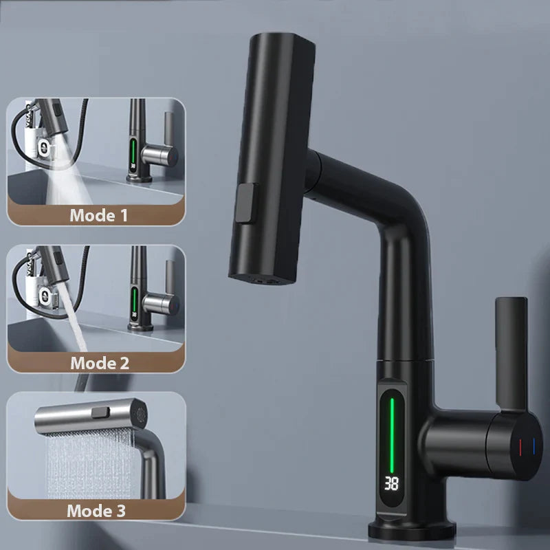 Experience the Ultimate in Luxury: Waterfall Temperature Digital Display Basin Faucet!